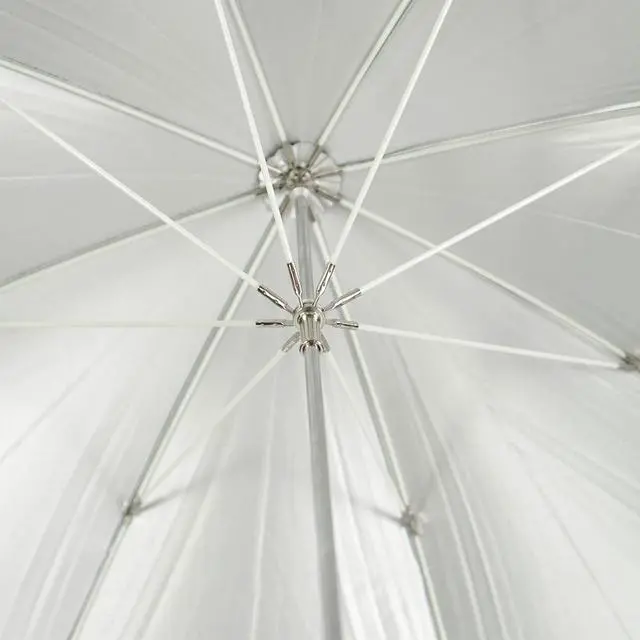 The fiberglass construction offers superior durability over traditional metal frames, making it more resistant to wind and other elements. Mounting this umbrella is a breeze, whether you're shooting with strobes, monolights, or speedlites. Most studio lights come with a built-in umbrella receptacle for instant mounting. For speedlites, there are a variety of mounting brackets available with adjustable and tiltable options for precise positioning. In summary, the 2006 45" Soft Silver Umbrella with a Fiberglass Frame is a durable, versatile, and functional addition to any photographer's equipment collection.