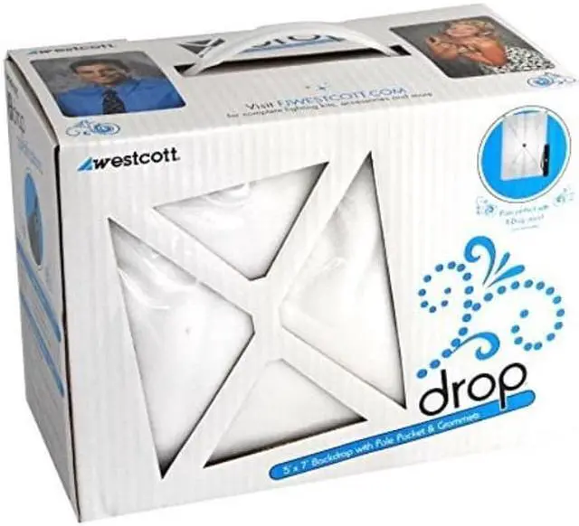 The Westcott 5' x 7' X-Drop Background in pristine white is a professional-grade, lightweight photography backdrop, crafted from 100% wrinkle-resistant cotton. This versatile backdrop is perfect for a wide range of photography genres, from captivating headshots and product photography to enchanting wedding shoots and diverse commercial photography projects. The backdrop features strategically placed grommet holes on both the top and bottom, simplifying the hanging process and eliminating the need to determine a specific orientation. This user-friendly design ensures a quick and effortless setup, making it an ideal choice for photographers on the go.