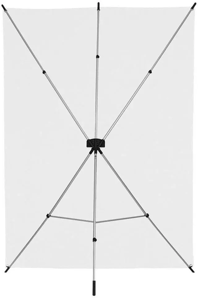 When stretched taut, it offers a smooth, sweeping appearance, eliminating the need for constant ironing or steaming. The X-Drop Backdrop Stand, weighing under 3 pounds, is the lightest available on the market, making it extremely portable. Its telescopic frame expands to 5' x 7' and locks into place, allowing for quick and easy setup. The backdrop attaches to the X-Drop's hooks via built-in grommets, ensuring a secure and stable setup within seconds. Constructed with heavy-duty aluminum, the X-Drop stand is both durable and portable, designed to withstand the rigors of professional use.