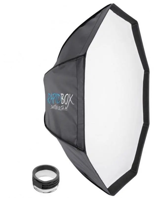 From professional photographers to hobbyists, the Rapid Box Switch Octa-M is the quintessential key light for capturing stunning portraits. Its octagonal design, inspired by the natural appeal of the human eye, creates a captivating and appealing catch light, enhancing the depth and dimension of your subject's eyes. The Rapid Box Switch Octa-M is not just a softbox; it's a versatile lighting solution that evolves with your needs. Engineered for compatibility with a wide range of popular strobes, speedlites, and monolights, it features 13 interchangeable light mount inserts and 9 collapsible light modifiers.