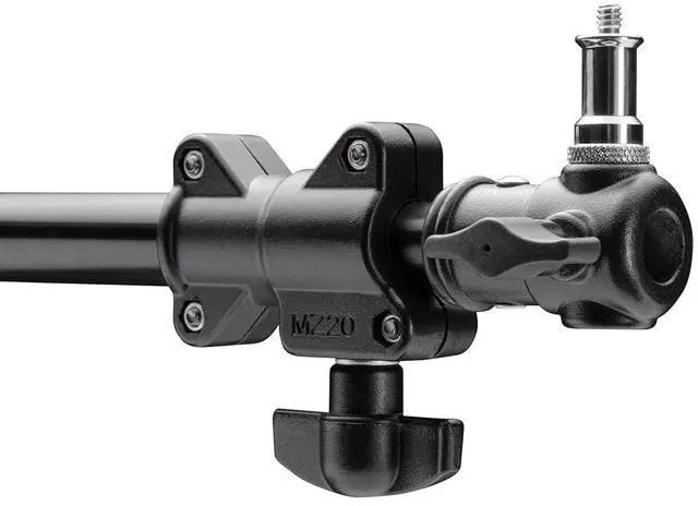 This Mini Boom Arm can also be used as a vertical light stand extender for up to 57" of additional height. Compact and Durable DesignFeaturing a durable all-metal design, the Mini Boom Arm is constructed to withstand years of use in any environment. Its pivot mounting system features a textured surface for secure, precise placement of your gear with a 180-degree range, and an easy-adjust positioning handle. At the end of the arm is a variable-position receptacle with a removable and reversible metal spigot for compatibility with virtually any light or adapter ( 1/4"-20 and 3/8"-16).