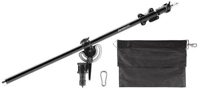 Securely Mount and Precisely Position Your GearDesigned for overhead lighting, microphone positioning, and extending light stand height, this compact aluminum boom arm telescopes from 31" to 57" and supports up to 11 lbs. at maximum extension. Unlike traditionally heavy and bulky boom arms, this Mini Boom Arm is a compact and easy-to-use mounting tool for both studio and location shoots. All-in-One Boom Arm Mounting SolutionThis all-in-one solution includes everything you need to mount your lights, modifiers, mics, and accessories overhead with a light stand or c-stand. It includes a built-in mounting system with a locking stand receptacle, fillable nylon weight bag, and weight bag hook.