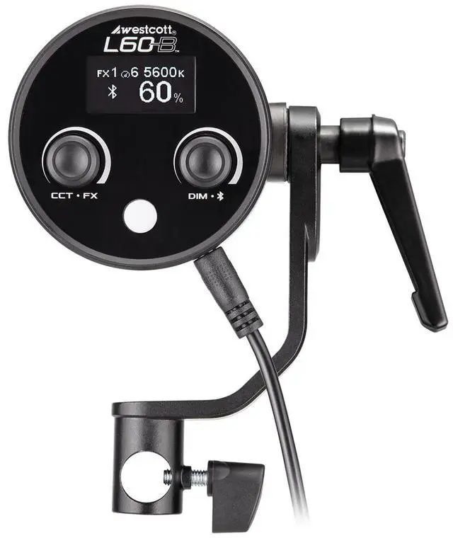 Enhance your lighting effects with the L60-B's nine built-in effects, including lightning, fire, TV screen flicker, faulty light bulb, pulse, paparazzi flashes, headlights, SOS, and emergency lights. Control these effects with a simple turn of a dial. The free Westcott StudioLink mobile app for iOS and Android lets you wirelessly control multiple lights and update firmware via Bluetooth. The L60-B features a metal yoke with a 5/8" (16mm) receiver, capable of tilting and rotating 360 degrees for precise positioning when mounted to a light stand. For ultimate portability, attach the optional battery grip.