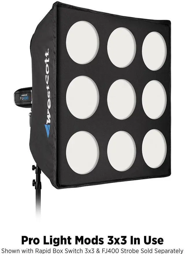 Whether you're capturing the dynamic action of a sports event, creating high-fashion editorial images, or producing engaging content for entertainment and commercial projects, the Pro Light Mods are the ideal accessory to elevate your visual storytelling. Their lightweight design and portability are enhanced by the inclusion of a convenient travel case, making them an essential tool for photographers and videographers who demand top-tier lighting effects on location or in the studio. Transform your softbox into a source of powerful, directional light that mimics the iconic look of Hollywood light banks or stadium lights with the Pro Light Mods for 3x3' Softboxes.