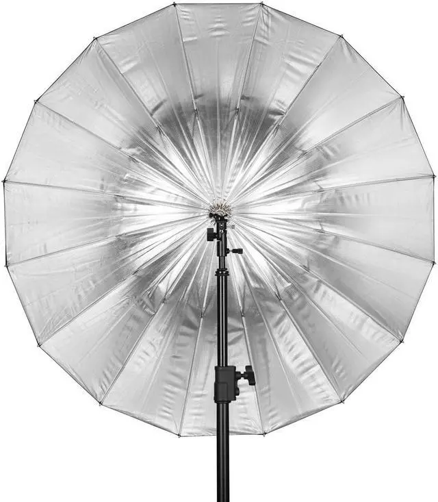 The 43" Deep Umbrella with Silver Interior is designed with a deeper profile than the original Apollo Orb, offering a more directed and efficient throw of light. It features 16 durable fiberglass ribs that create a truly round shape, ensuring an even projection of light forward with maximized output. Whether you're shooting in a studio or on location, the 43" Deep Umbrella with Silver Interior is a versatile and essential tool for achieving optimal lighting in your photography.