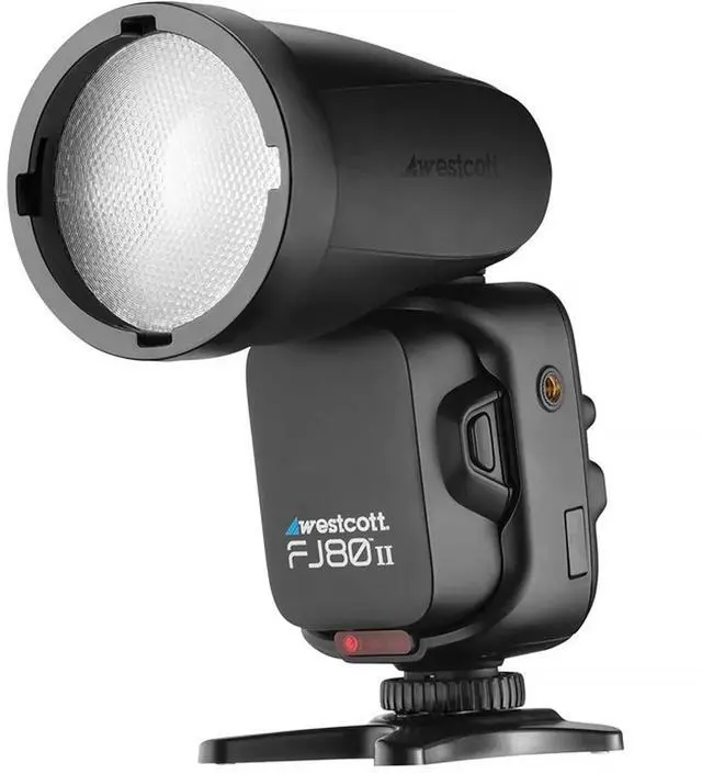 It also features Automatic Memory Recall, group and channel assignment, and Group Exposure Compensation. Designed for faster shooting, the FJ80 II M provides 500+ full-power flashes per charge with a fast recycle time of 0.05 to 1.5 seconds. Its removable 11.1V 1600mAh lithium polymer battery fully recharges in just 2 hours. The FJ80 II M is also designed for flexibility, with 360-degree horizontal and 90-degree vertical pivot ranges. Mount it off-camera via the cold shoe or its built-in 1/4"-20 female thread. The included shoe stand allows for free-standing use and can be mounted to most light stands with no additional hardware required.