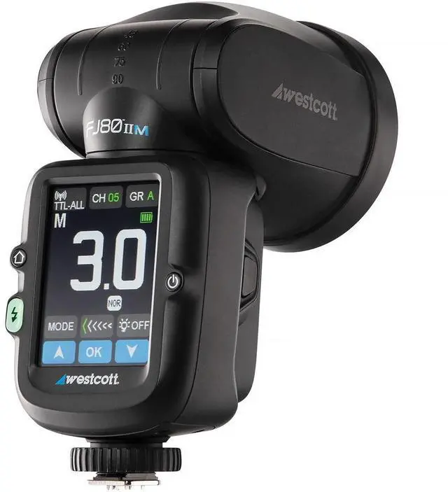 Take your photography to the next level with the FJ80 II M 80Ws Universal Touchscreen TTL Speedlight Flash, the only touchscreen speedlight in the market. This innovative device not only functions as a powerful flash but also as a transmitter, offering unparalleled control over the FJ Wireless Flash System and Canon RT devices. Designed for versatility, the FJ80 II M can be used on-camera or positioned off-camera, providing you with the flexibility to capture the perfect shot from any angle. Its unique compatibility extends to a wide range of cameras including Canon, Nikon, Sony (in manual mode), Fuji, Panasonic Lumix, and Olympus, making it a truly universal speedlight flash.