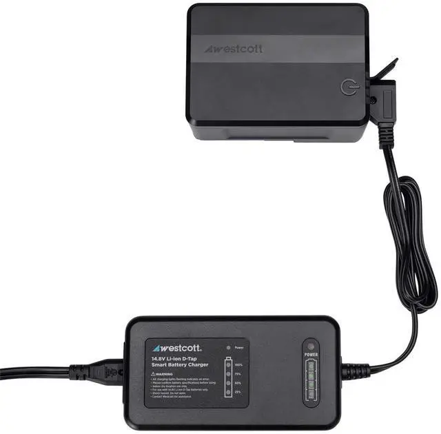The backlit LCD screen provides a user-friendly interface, illuminating with a simple touch to display the remaining capacity and output voltage, keeping you informed of your power status at all times. The MV95 Mini is not only compact but also travel-friendly, measuring just 4.3" x 3.0" x 2.1", which is 30% smaller than traditional V-Mount batteries. It is TSA-approved for carry-on travel (please verify restrictions), making it a reliable companion for any location shoot. Recharging the MV95 or other 14.8V D-Tap Li-ion batteries is effortless with the included smart battery charger.