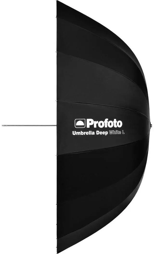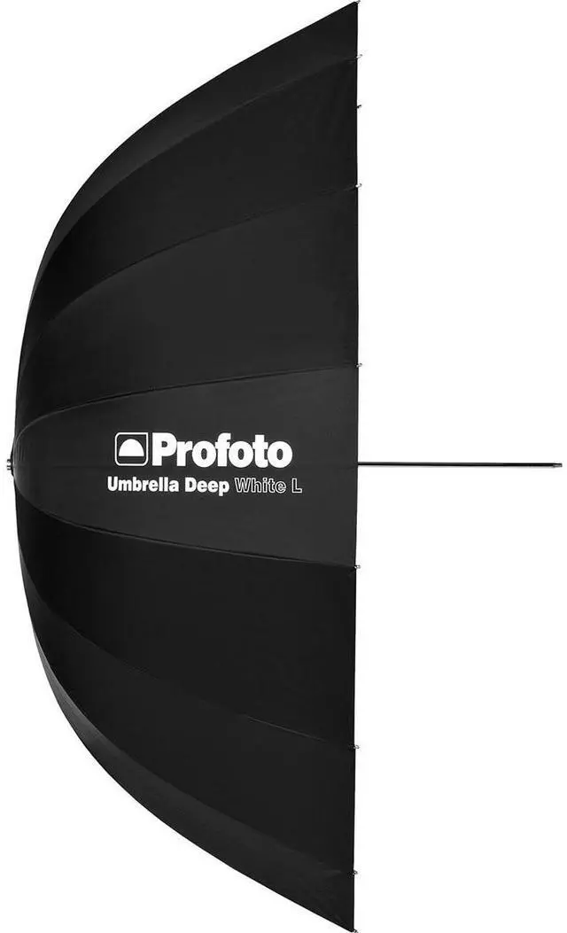 This results in a soft, even illumination that beautifully highlights your subject, whether you're shooting with natural or artificial light sources. The black exterior of the Profoto Deep White Umbrella further enhances its functionality by reducing unwanted reflections and glare. This feature, combined with the umbrella's large size, provides extensive coverage and superior light control, allowing you to create stunning, professional-quality images. As a product from Profoto, a leading brand in the photography industry, this Deep White Umbrella exemplifies high-quality craftsmanship and design. It's not just an umbrella; it's a tool for capturing the perfect light in every shot.
