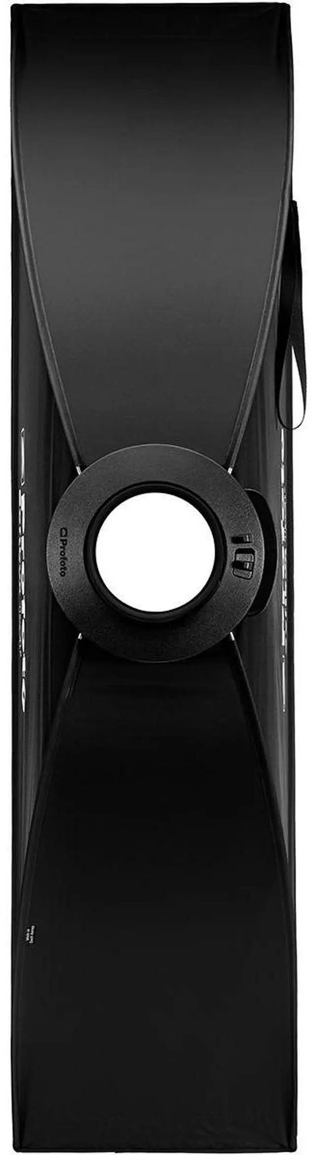 The white interior diffuses the light evenly to create softer, natural-looking illumination with reduced contrast and shadows. The Profoto softbox Strip line includes an all-in-one mount for quick setup up features the recessed front that prevents shadows and hotspots, and can be used with halogen continuous lights (max 500w halogen).