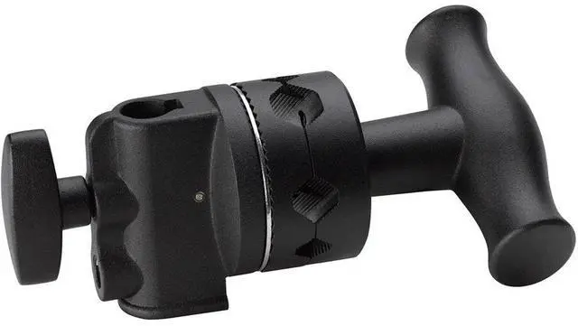 The Kupo G203111 2-1/2 inch Grip Head (Black) consists of a pair of rotating aluminum discs attached to a 5/8 inch (16 mm) receiver. The discs have four different sized "V" shaped jaws to accept any accessory with a 5/8 inch, 1/2 inch, 3/8 inch, 1/4 inch mounting stud or tubing. The "V" shaped jaws have "teeth" that grab whatever is mounted between the plates securely. The 2-1/2 inch Grip Head features an oversized ergonomic "T" handle and dedicated roller bearings designed for maximum torque. The G203012 uses a non-slip aluminum friction disc that will maintain its durability over time that offers the user positive locking strength and precise control.