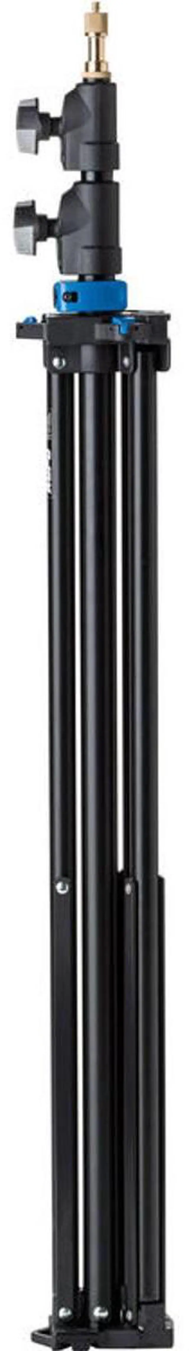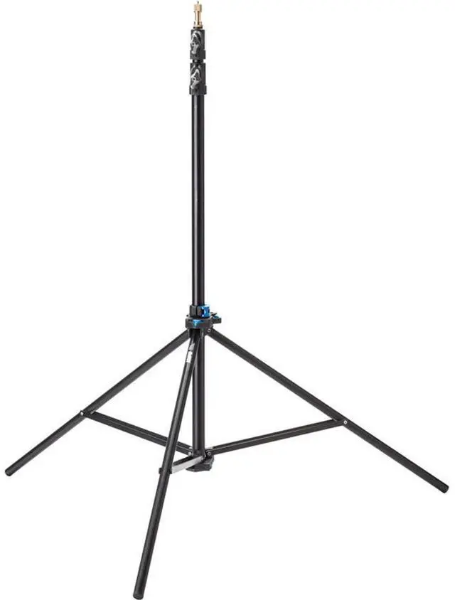 The 8' Midi Click Light Stand also features an innovative four-way interlocking design, removing any limitations when connecting multiple stands. This feature enhances the stand's versatility, making it an invaluable asset for photographers needing to set up complex lighting arrangements. To further ensure the safety of your valuable lighting equipment, this stand is equipped with an air-cushion mechanism. This feature prevents lighting fixtures from abruptly descending, even if the locking knob isn't properly tightened, providing an extra layer of security for your gear. For added convenience, the stand includes plastic locking loops, to which an optional strap with two clasps can be attached.