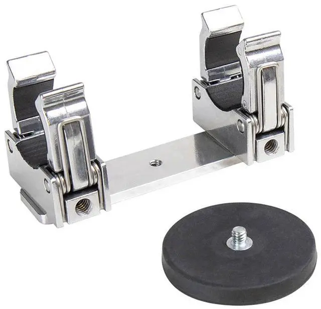 It includes two integrated spring metal clamps, expertly crafted for the quick and secure mounting of T-12 LED Lamp Tubes. These clamps are compatible with leading brands and can accommodate tube diameters from 38 to 42mm, ensuring broad compatibility across various lighting setups. To protect your valuable equipment, the holder is equipped with rubber pads inside the clamps. These pads act as a safeguard, preventing scratches and damage to your LED Tubes, thus extending their lifespan. Whether you're a professional photographer or a video content creator, the Kupo Universal Single LED Tube Holder with Magnet is an indispensable tool for achieving optimal lighting conditions, enhancing the quality and precision of your work.