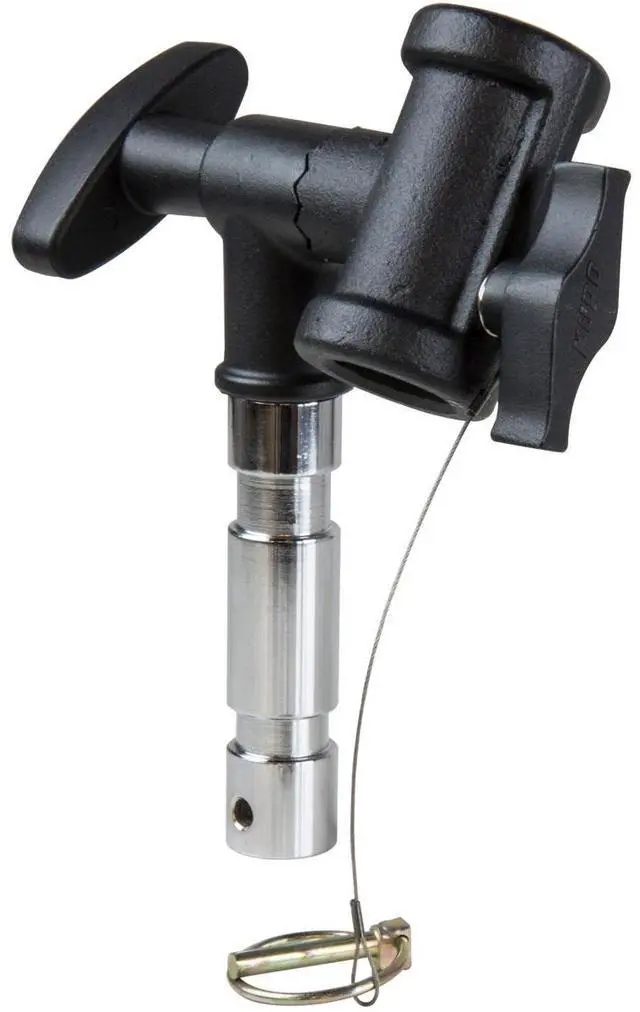 Constructed from heavy-duty iron casting, the Kupo Swivel Junior Receiver Adapter comes with a male 1-1/8" pin ( 28mm) at one side designed to drop into a combo stand junior receiver. Also features a swivel female 1-1/8" receiver at the other end with a rosette mechanism that allows for a tilting angle every 30 degrees. Ideal for rotating a fixture, such as the ARRI Skypanel, from horizontal to vertical and eliminating interference of barn door/softboxes when positioning a light on the stand.