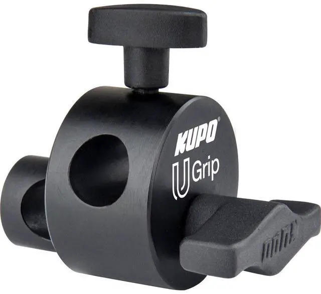 Featuring a versatile 360-degree swivel 5/8" (16mm) receiver, this U-Grip Head ensures seamless adjustments and secure locking, courtesy of the robust aluminum die-cast knob. This functionality allows for swift changes in setup, saving you time and effort during shoots. In summary, the Kupo U-Grip Head, 1.9", Black is an indispensable tool for videographers and photographers seeking a stable, precise, and portable mounting solution. Its robust build and thoughtful design make it a standout choice for a wide range of mounting applications in the dynamic world of visual content creation.