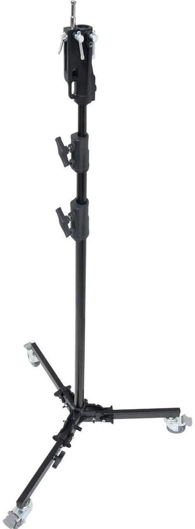 Where professional photography and videography meet, you'll find our 4-Section Aluminum Studio Roller Stand with Casters, standing tall at 9.7 feet. This sturdy and reliable stand is engineered to support loads of up to 33lbs, making it an ideal choice for holding lights, flags, backdrops, and a variety of other equipment. Constructed from high-quality aluminum, this stand boasts a robust black anodized steel base, offering enhanced stability for your precious equipment. Its four-section design allows for easy and precise height adjustments, catering to a wide range of studio setups.