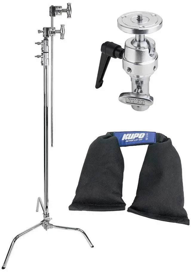 To further ensure safety and stability, the kit comes with a 10lb Wrap & Go Shot Bag. This premium shot bag is constructed from black cordex textured nylon with a water-resistant polyurethane coating and filled with 2mm size steel balls. It serves as a dense counterweight, effectively stabilizing stands and booms during shoots. In summary, the Kupo 40" Master C-Stand with Sliding Leg Kit is a comprehensive, versatile, and reliable solution for all your overhead shooting needs, making it an indispensable tool for photographers and videographers seeking to achieve professional-grade results.