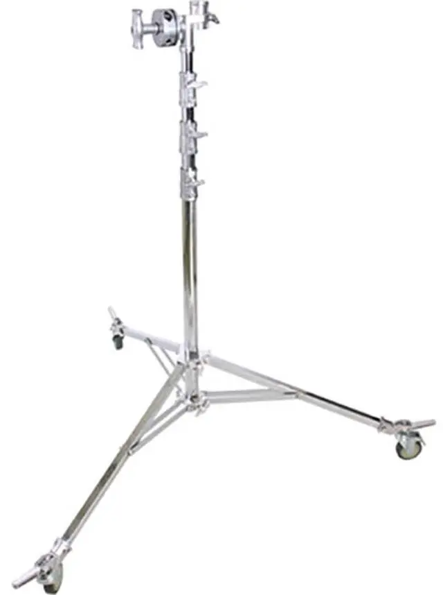 The stand also features a "true combination" head, which includes a 4 1/2" grip head, affectionately known as a "lollipop, " and a junior 1-1/8" (28mm) receiver. This dual-functionality head is ready to tackle any mounting challenge, accommodating a wide array of equipment and accessories. Whether you're working in a studio or on a rugged rural shoot, the High Overhead Roller Stand's reliable and high-quality construction, coupled with its ability to adapt to various environments, makes it a top choice for industry professionals. It's a versatile, durable, and reliable support system that is essential for achieving the perfect lighting or audio setup for your next project.