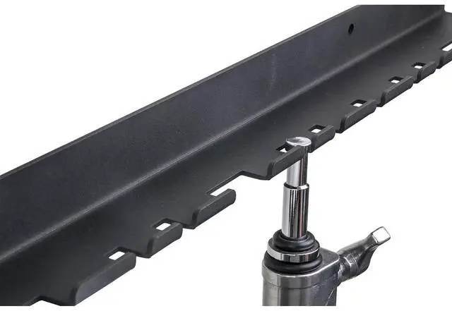 Why settle for less when you can organize your photography equipment with our 46.5" Hanger for Lightweight Stand in Matte Black This robust stand hanger, measuring a generous 46.5 inches (118cm), is designed to hold up to 10 baby stud holders, each measuring 14mm. Crafted to support your lightweight stands, this hanger is an essential tool for photographers and videographers who value organization and efficiency. The matte black finish not only adds a professional touch but also ensures durability and longevity. Ideal for studio setups, this hanger helps keep your workspace clutter-free and your equipment within easy reach.