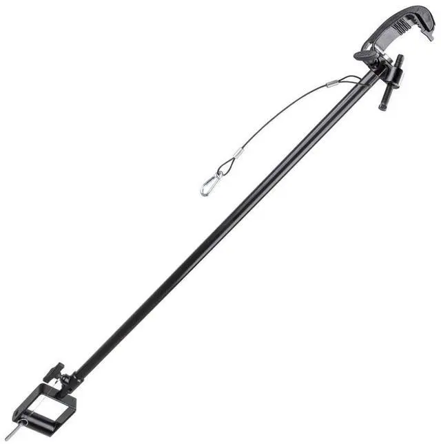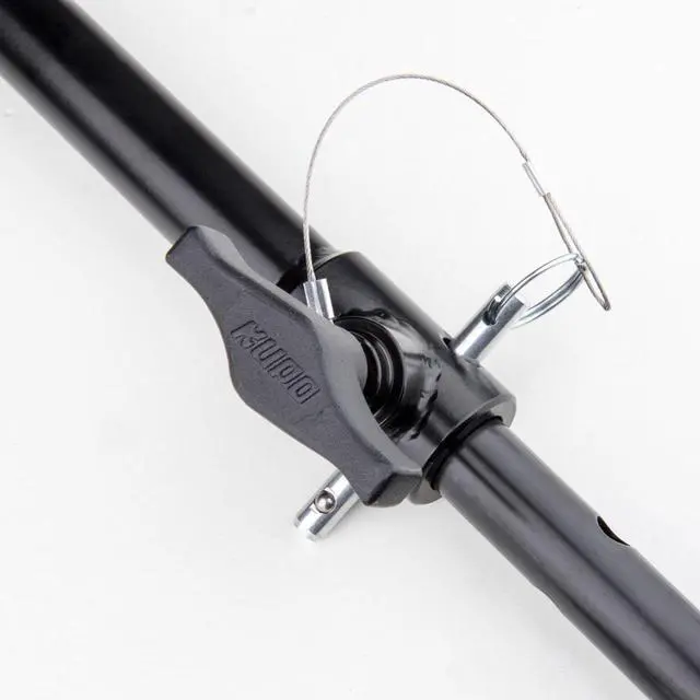 Kupo's Lightweight Telescopic Hangers are made of solid steel with a matte black powder coated finish, designed for mounting lightweight fluorescents, LED lights, or any lighting fixtures less than 33lbs (15kg) in weight. Features a safety wire equipped on the column for the iron casting clamp for added security, and a quick-release ball safety pin also prevents the riser from slipping. The iron casting clamp is for a pipe from 1-1/2" (35mm) to 2-1/2" (65mm) O. D., and the collar on the top of telescopic hanger keeps it safe for pan adjustment while the knob of the clamp is loosened.