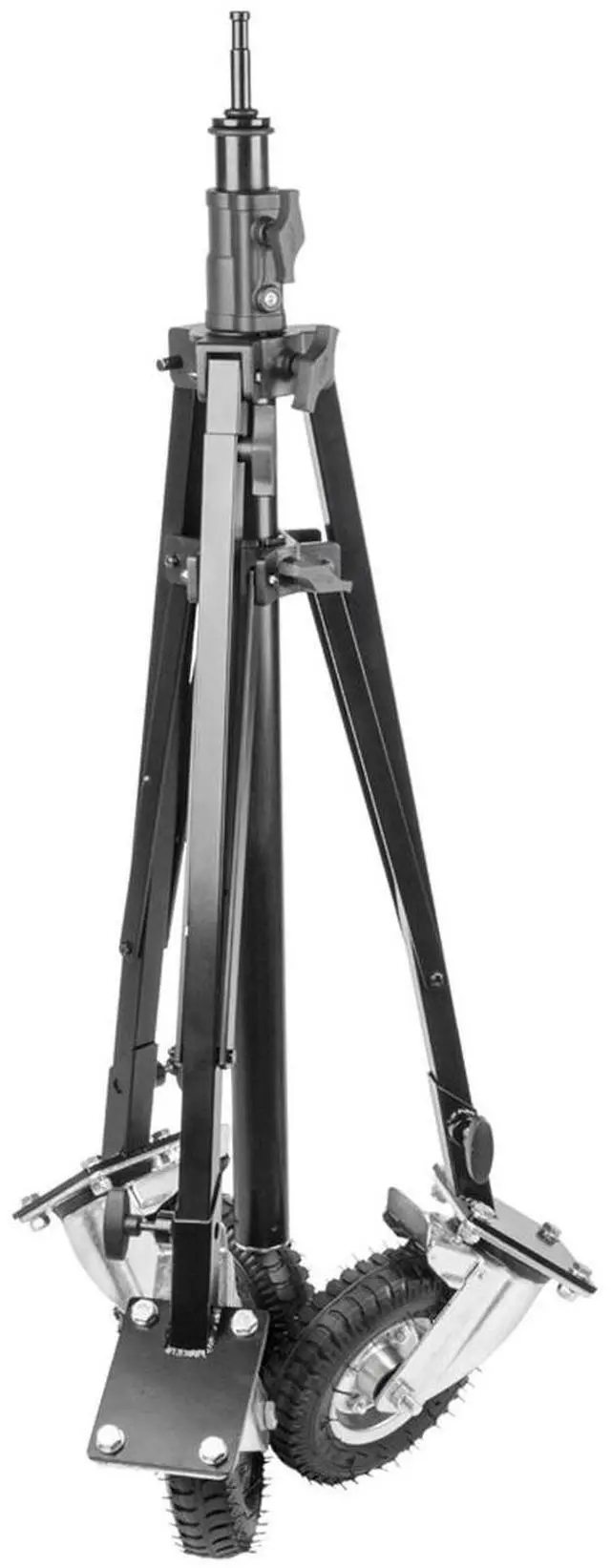 Premium pneumatic 8" wheels makes the Steadicam Stand easier for rolling in the studio or on location. Constructed from black powder coated steel, the Steadicam Stand is primary designed to rest heavier payloads like Steadicam rigs and stabilizer systems between takes. Supports up to 79lbs (36kg).