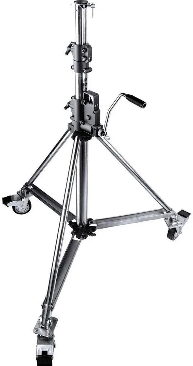 The top two sections are plated with chrome, providing extra stability and a touch of elegance to the stand's overall design. Designed with a compact footprint of just 51.2 inches, this stand is capable of safely supporting weights up to 176.3 lbs (80kg). This makes it an ideal choice for those needing a sturdy, space-efficient solution for their heavy-duty lifting needs. Whether you're in the audio and video industry, photography, or any field that requires reliable equipment support, the Heavy Duty Wind-Up Low Base Steel Stand is a versatile and dependable choice.