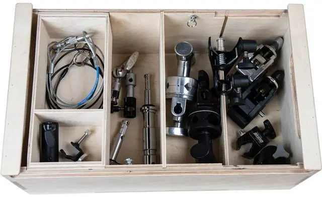 Need to mount lights or small accessories? No problem - dual 3/8"-16 threaded inserts on the lid let you attach a baby pin or other gear on the fly; plus, its sliding track cover with locking latch and spring-loaded pin ensures fast, secure access to your tools. Whether you're flipping it upside down for rigging or using it as a step, this apple box is engineered to keep everything safe and accessible.