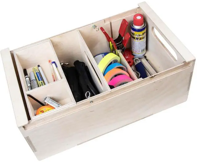 The Kupo Tooling Apple Box isn't just another 8" Full Apple Box - it's a smart, ready-to-assemble kit designed to do more. Built from solid 8-ply premium birch plywood with a smooth natural finish, it delivers the durability you expect with the added bonus of internal storage for A. C. or grip tools. Inside, you'll find a well-thought-out layout featuring three adjustable dividers and a removable organizer tray, so your gear stays neatly sorted and easy to reach. It maintains standard full-size apple box dimensions, making it fully compatible with the rest of your setup.