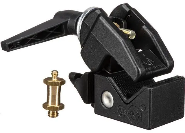 But the standout feature is the built-in socket that can accommodate over 30 attachments. This means you can use this Super Clamp to hold anything from backgrounds to lighting fixtures, making it an indispensable tool for both studio and on-location shoots. The package includes a reversible short stud and a heavy-duty flex arm, enhancing the clamp's adjustability and flexibility. With this Super Clamp, you can easily position your lights or other equipment exactly where you need them, ensuring optimal results every time. In summary, the Manfrotto Super Clamp with Reversible Short Stud Kit and Heavy Duty Flex Arm is a durable, versatile, and adjustable solution for all your photography equipment holding needs.