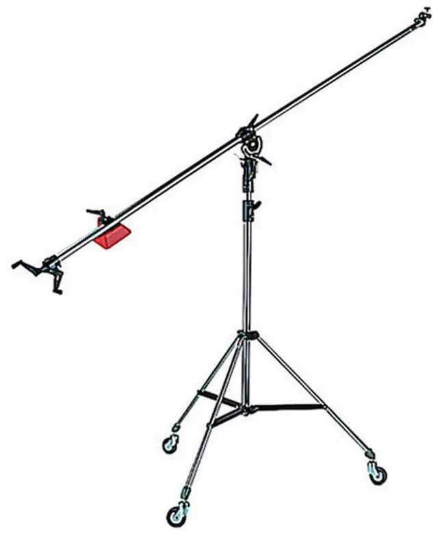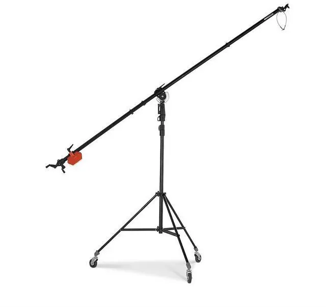 Where professional photography meets superior functionality, the Manfrotto 025BS Super Boom Arm with Pivoting Clamp 123, Counter Weight 022, Cable Clips, and Cine Stand 008 with Casters, Black Anodized, stands out. This meticulously designed boom arm features coaxial geared controls located at the end of the boom, enabling a wide range of movement up to 180 degrees. Constructed with black painted aluminum, the two-section 008BU (also known as 3071B) stand is not only durable but also lightweight, making it a reliable choice for photographers and videographers. The stand is equipped with smooth-rolling casters, allowing for easy mobility and positioning in any studio setup.
