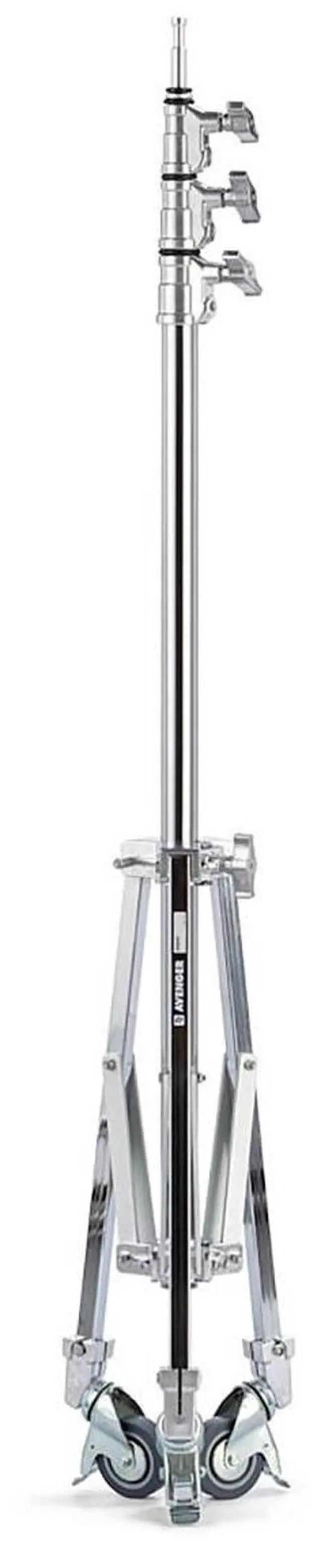 Take your photography or videography to new heights with the Avenger A5043 High 14.10 ' Roller Stand 43. This sturdy and durable stand, crafted from high-quality steel, is designed to withstand heavy loads and repeated use, making it a reliable choice for professionals and hobbyists alike. The stand's low-profile base not only ensures stability but also allows for easy positioning on any set. With its four adjustable sections and three risers, this versatile stand offers a wide range of height adjustments, reaching up to 14.10 feet. This makes it ideal for various applications and setups, whether you're illuminating a scene with lighting equipment or capturing the perfect shot with your camera.