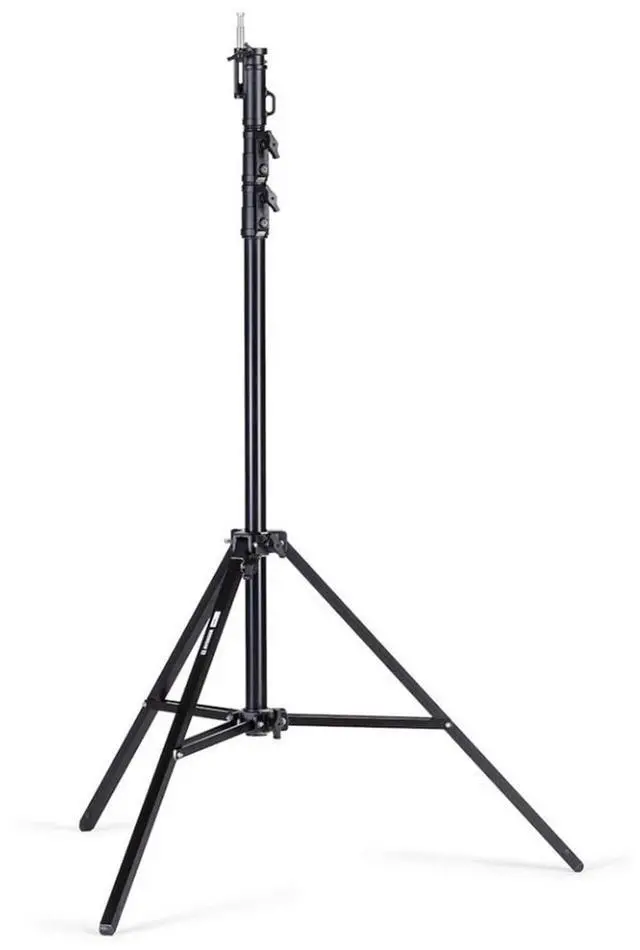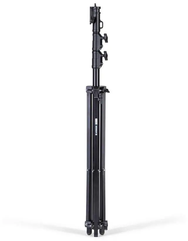 The Avenger 11.5 ' Alu Black Combo Stand 35 rises to a maximum height of 11.5 ' ( 3.5 m). This stand features a leveling "lazy" leg, which extends, providing sure support when setting up on uneven terrain such as hills or stairs.
