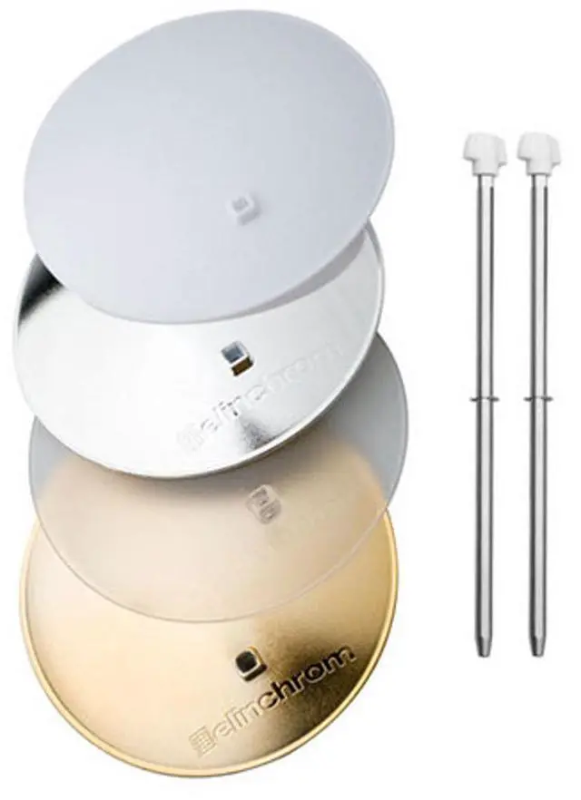 The Elinchrom Deflector Set for Softlite Reflectors and Rotolux Softboxes offers a simple solution for softening and adjusting the flash head output when used with Softlite reflectors or Rotolux softboxes. The 5.5" (14cm) discs can either cool or warm the light, while ensuring it is bounced and diffused. The set includes silver, gold, translucent, and frost deflectors, along with two rods one for attaching the disc to the 7mm umbrella receptacle on the flash head.