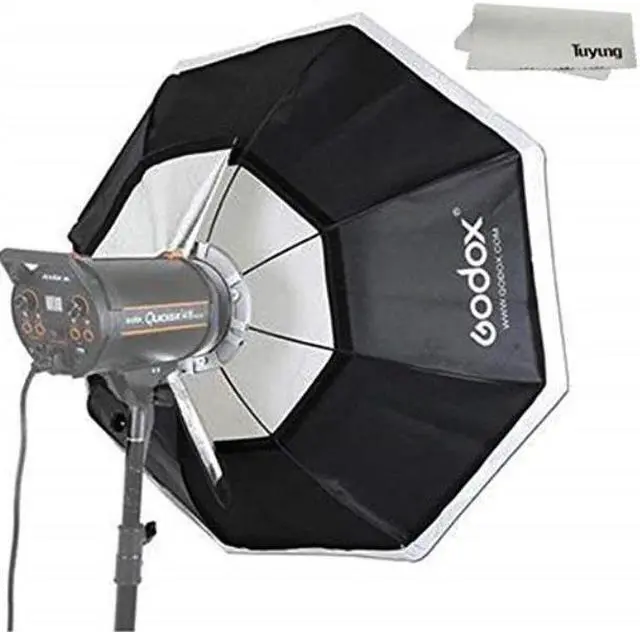 Take your photography to the next level with the Godox 37" Octagon Softbox, specifically designed with a Bowens Speedring for seamless compatibility with all Bowens mount flash heads. This high-quality, durable softbox is a must-have tool for professional photographers and videographers seeking to create soft, direct, and pleasing light effects in their work. The 37" size of this versatile softbox offers an impressive wrap-around lighting effect, especially when used in close proximity to the subject. Its octagonal shape not only provides a broad, even light distribution but also creates natural-looking catchlights in the subject's eyes, adding depth and life to your portraits.