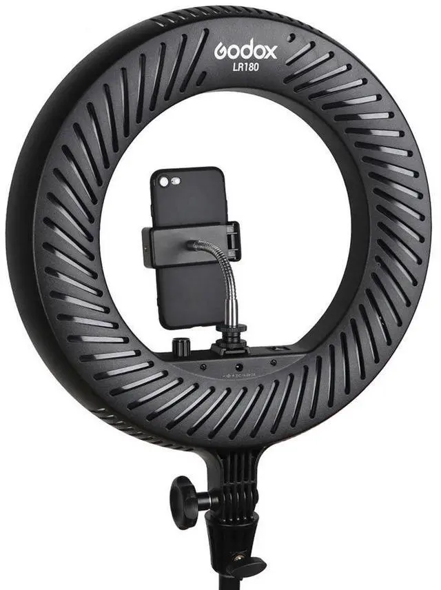 This feature ensures you always have the right amount of light, whether you're shooting in a studio or on location. Powered by AC, the LR180 comes with an included adapter, ensuring continuous and reliable performance for all your photography needs. With the LR180 Daylight Ringlight from Godox, you can elevate your photography skills and capture images that truly stand out.
