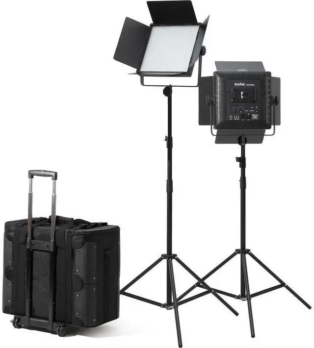 For those shooting on location, separately available Sony 14.8V BP-L V-mount batteries can be used to power the lights. In summary, the LED1000Bi II Bi-Color LED 2-Light Kit with Stands from Godox is a durable, versatile, and high-quality lighting solution designed to meet the needs of professional photographers and videographers.