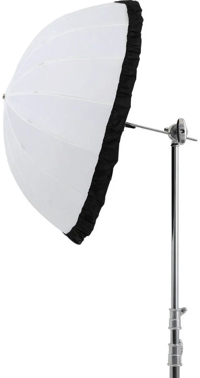 A professional-grade addition to any photographer's toolkit, the Godox Black and Silver Diffuser for 34" Parabolic Umbrellas is an essential accessory for achieving optimal lighting conditions. Crafted with durability and versatility in mind, this high-quality diffuser is designed to enhance your photography by manipulating light in a variety of ways. One side of the diffuser is coated with a black material, expertly engineered to absorb light and minimize reflections when shooting through umbrellas. This feature is particularly effective in creating a higher contrast and a dramatic look, perfect for capturing striking portraits.