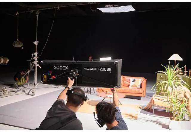 Professionals can achieve total color control through multiple modes, including CCT, RGBW, HSI, GEL, XY, and FX. The light mat also offers variable intensity from 0 to 100% in 0.1 % increments, with four dimming curves linear, S-curve, exponential, and logarithmic providing nuanced lighting adjustments. Advanced control methods enhance user convenience, with options to adjust settings on the controller unit or through industry-standard protocols like DMX512, RDM, and LumenRadio CRMX. For simpler setups, the Godox Light or Godox KNOWLED apps enable Bluetooth control from up to 98.4 ' away.