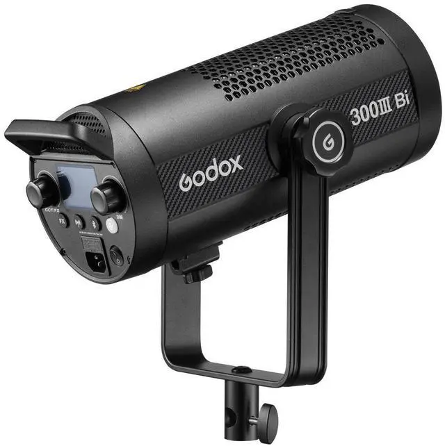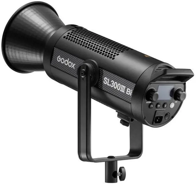 SL300IIIBI: 117, 000 lux@1m, 5600K, with reflectorFree Option of Color TemperatureSL300IIIBI features 5600K daylight-balanced lighting, suitable for users who only pursue intensity. The Bi-color version SL300IIIBI enables you to match the ambiance or other lights on a set in the shortest time without worrying about gels or filters. Control it in HandIn addition to the intuitive on-board operation and RC-R9 remote, the SLIII can also be controlled by Godox Light App, with which all complex coordination can be achieved at your fingertips. High Color FidelityWith a high CRI/TLCI rating of 96/97, the SLIII reproduces faithful colors and delivers natural results, greatly saving your time for post-production. Keep it SilentYou can freely switch on the silent mode to eliminate the noise for better application in sound-sensitive environments. Built-in FX EffectsWith built-in cinematic FX effects, the SLIII brings simulated lighting scenarios to your set and provides more creative possibilities. Flash I Flash II Broken Bulb Television Storm I Storm II Candle Fire FireworkSet it at WillThe rotatable U-shaped yoke offers excellent flexibility and can be used with most light stands. You can easily set the lights at any angle you want, catering to your different requirements on setup.