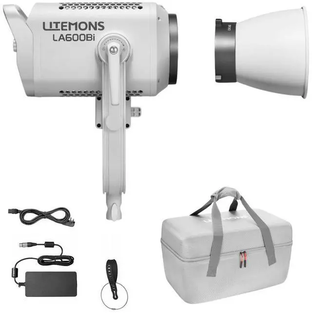 The LA600Bi is built with practicality in mind. Its 3-level fan cooling system (Auto, Medium, High) ensures optimal thermal performance during extended shoots while keeping noise to a minimum. It features a Bowens S-type front mount, allowing for a wide range of light modifiers like softboxes, beauty dishes, and reflectors, making it adaptable to virtually any lighting scenario. The integrated U-bracket makes it easy to mount and position the light on standard light stands using its 5/8" receiver.