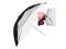 Become a master of light control with the Glow 40" White Umbrella with Removable Silver/Black Layer. This high-quality, durable umbrella is designed to provide even, diffused lighting effects with soft shadow definition, perfect for capturing stunning photographs of people and subjects. Its unique design features a black opaque outer layer and a highly reflective silver lining, which minimizes light loss that typically occurs through white fabric material. This versatile photography umbrella offers three creative lighting options: traditional soft bounce, a softer and more efficient bounce with the silver/black outer layer, and a clarity-enhancing shoot-through diffuser. Each option allows you to manipulate the lighting to suit your specific needs, making this umbrella a functional tool for any photography session. The Glow White Umbrella is not only stylish but also easy to work with and transport, making it an ideal choice for both studio and on-location shoots. Its large 40-inch diameter ensures ample coverage, providing a broad light source that can bring out the finest details in your subjects. The Silver/White umbrella option delivers stronger, focused lighting along with soft shadow definition, making it particularly suitable for higher light output and greater reach. Alternatively, the Translucent Umbrella provides diffused lighting around a bright central burst, allowing you to vary the lighting effect by adjusting the distance from the flashhead to the umbrella. The Glow White Umbrella's design is inspired by the efficiency of a parabolic reflector, ensuring that more light reaches your subject for better control and results. The larger and closer the light source is to the subject, the softer the results will be in the transition of the highlight into the shadow.