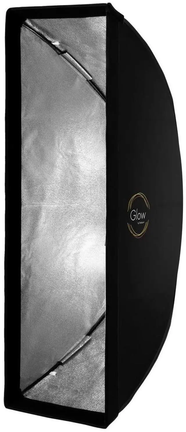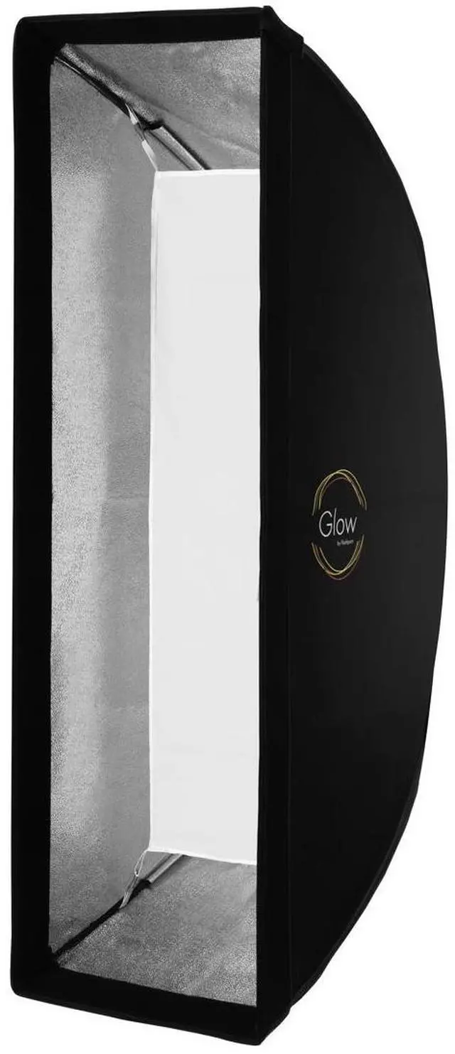 GLOW 3 GLOW Strip Rectangle Softboxes are specifically able to create diffuse lighting effect, not only used for a directional soft light source but as a specialty rectangular shape in reflective and translucent objects. This medium strip 12x36" box size acts as swath of gentle light that limits coverage and creates more dramatic effects. The entire series employs advanced technology designed to create perfect images for editorial and product still life and stylized imaging. Most uses for this size with people are in isolated light treatment where controlled contrast is desired. GLOW Softbox materials and construction are exceptional.