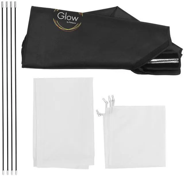The critical ingredients in any softbox are the internal reflective fabric, the front diffuser/baffle and the shape of the box. Every Glow product features removable double diffusers. Light spread is extremely even, pleasing and contrast balanced. Reinforced support rod pocket, seams and Velcro closures make assembly and setup trouble-free. A Glow Speed Ring to match your flash head mount must be purchased in order to use this product