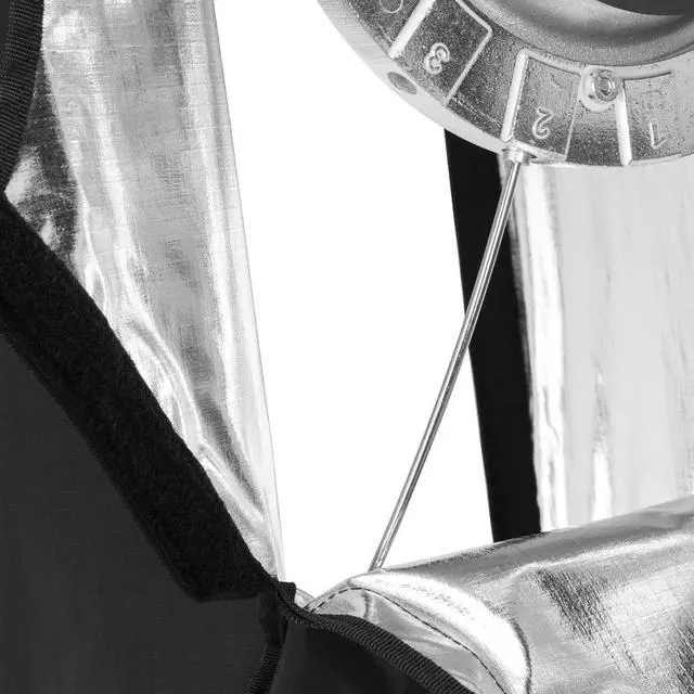 This softbox also introduces the dual-purpose Glow bracket, compatible with the full range of Bowens 'S' type light modifiers. This feature not only enhances your flash's versatility but also breathes new life into your speedlight by creating soft, diffused lighting. The interior of this large rectangular softbox is finely lined with super strength silvered grid fabrics, adding a crisp quality to the light output. The light spread is exceptionally even, creating pleasing and contrast-balanced images. The special reflector design optimizes the highlight/shadow ratio, focusing the illumination for the best possible results.