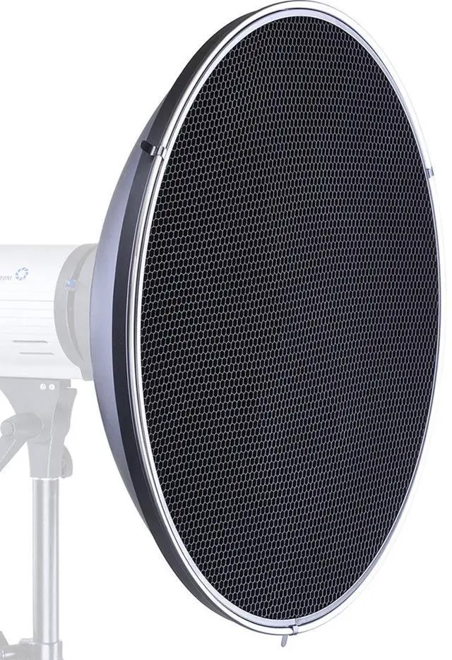 A must-have tool for professional photographers and videographers, the Glow 40-degree Honeycomb Grid for 17" Beauty Dish is designed to enhance your artificial lighting capabilities. This high-quality, durable accessory covers the aperture of your reflector, offering you unparalleled control over your light source's beam. The honeycomb grid works by subtly feathering the hard light, resulting in attractive, soft shadows that can add depth and dimension to your images. This feature is particularly beneficial for high-key fashion photography, where the emphasis on the model's facial features such as the eyes, lips, nose, and chin is paramount.