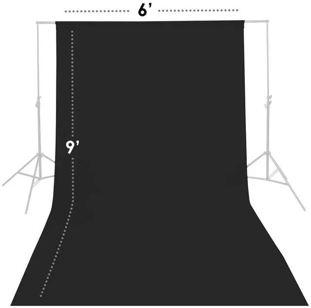Unique to this black version is its secondary function. When hung horizontally behind the photographer, it serves as a blind for sensitive items that reveal and absorb reflected light, like textured oil paintings. This feature ensures the colors remain rich and unaffected by other sources of tint. In summary, the Glow 6x9 Black Muslin Background is a durable, versatile, and high-quality choice for photographers seeking an affordable, professional-grade backdrop.