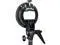 Glow Speedlite Bracket for Elinchrom The Glow Shoe Mount S-Type Flash Bracket is the mobile solution for adapting any type of speedlight or barebulb on camera strobe to create flattering, soft and rich softbox quality. The bracket serve many purposes, accepting the full line ofElinchrom type light modifiers to enhance your flash's dexterity. By adding the Glow 4 Speedlite Adapter Mount to the S-Type Flash Bracket you can mount up to 4 speedlites simultaneously to achieve exceptionally high light output on the center axis, securely and precisely. Transform your speedlight and barebulb strobes into a snooted hair light, a texture enhancing beauty dish or even a gridded spot - wherever you want to give your speedlight a new light life! Your portable flash attaches to the assembly and accommodates almost all brands of flashes.