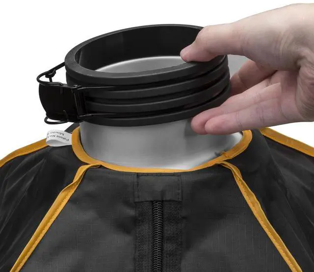 The self-catch EZ Lock surrounds a thick center shaft, providing a comfortable place for your fingers to push-lock the mechanism open, and a generous release to close the softbox painlessly. With much attention to minutia in its tough build, from resilient form-fitting fabric to flexible aluminum frame ribs, GLOW EZ LOCK modifiers set the standard for portable light control for people and subjects.
