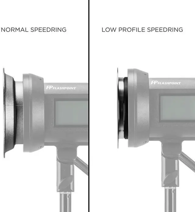 Designed to work seamlessly with Bowens flash heads, this speedring facilitates a harmonious balance between the heights of the tube mounted in the base plate of the strobe and the sweet spot, thereby maximizing the power of reflectors and modifiers. The low-profile design of this speedring is particularly beneficial for Flashpoint XPLOR600 series monolights, as it accommodates the lower tube mounting position found in these models. The shallow mount ring optimizes the use of the Bowens modifier, ensuring you get the most light from your flash. This versatile speedring is compatible with softboxes that have interchangeable speedrings, offering the best light spread.