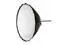 The reverse process of closure is quick and straightforward. Once constructed, the gracefully curved interiorcreates a perfect silvered reflector for a reverse light throw design using a Focus Rod mounted flash head. The unique Glow Profond Quick-Open Deep Octadecagon Softbox is the fantastic construction of a parabolic design, supported by 18 external nylon fiberglass rods; no metallic dowels or 'bones' interfere with the perfectly shaped silvered interior bowl. The Softbox provides the ideal source for mastering all location situations where quality counts by imitating natural sunlight - even in the sports arena or outdoors on the playing field.
